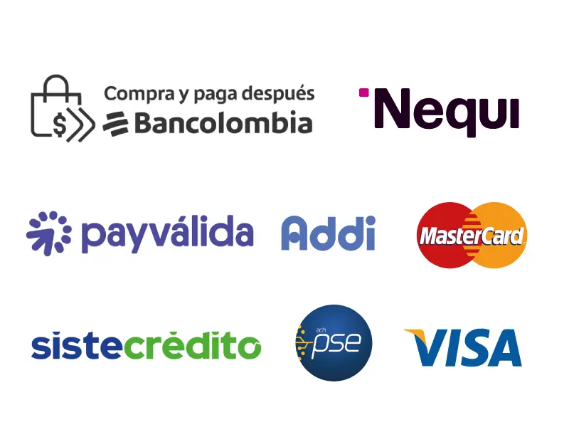 En V-SAG pensamos en tu comodidad. Paga tus repuestos y accesorios con los principales medios de pago en Colombia: Nequi, Bancolombia, Payválida, Addi, Sistecrédito, PSE, Mastercard y Visa.